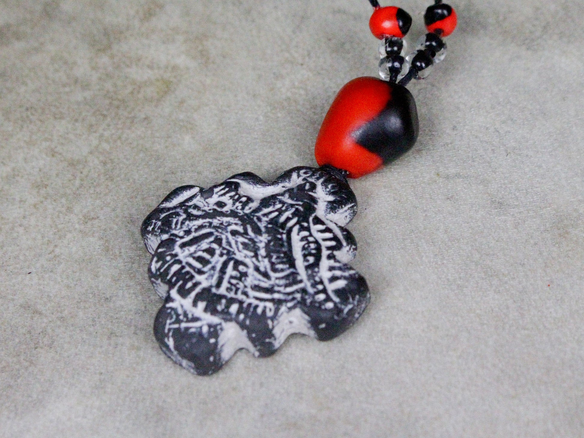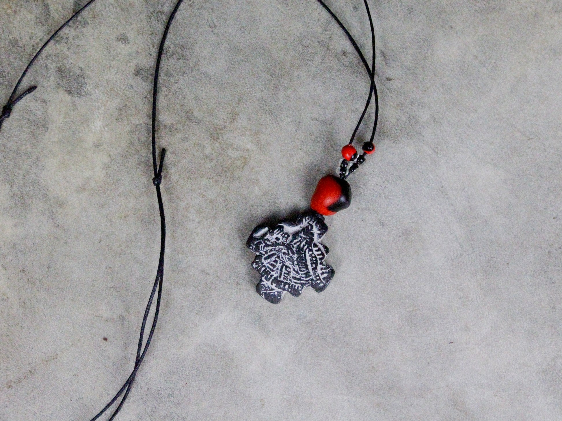 ceramics, huayruro seeds, beads